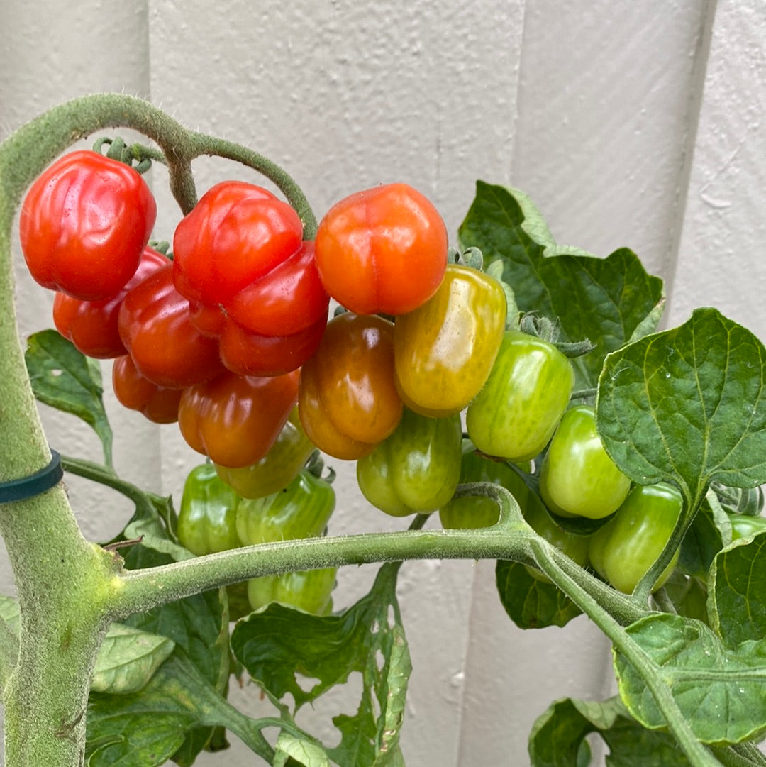En flott cherrytomat med flere store flotte klaser med dyprøde, hjerteformede, saftige og smakfulle tomater. Veldig søte og gode.