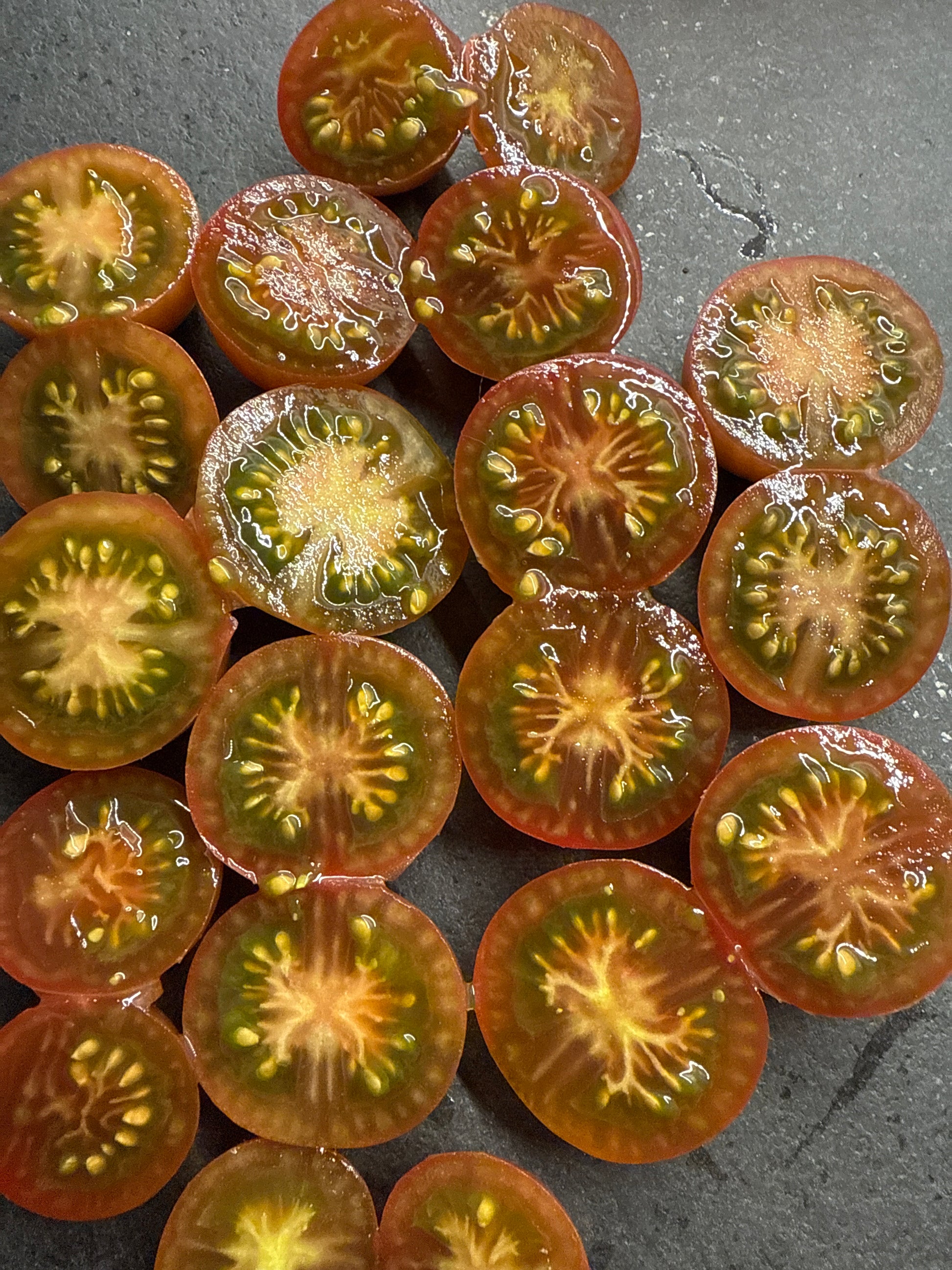 Chocolate Cherry produserer runde cherrytomater. Sjokoladebrune frukter med brunt fruktkjøtt. Utmerket, fyldig, søt "mørk" tomatsmak.