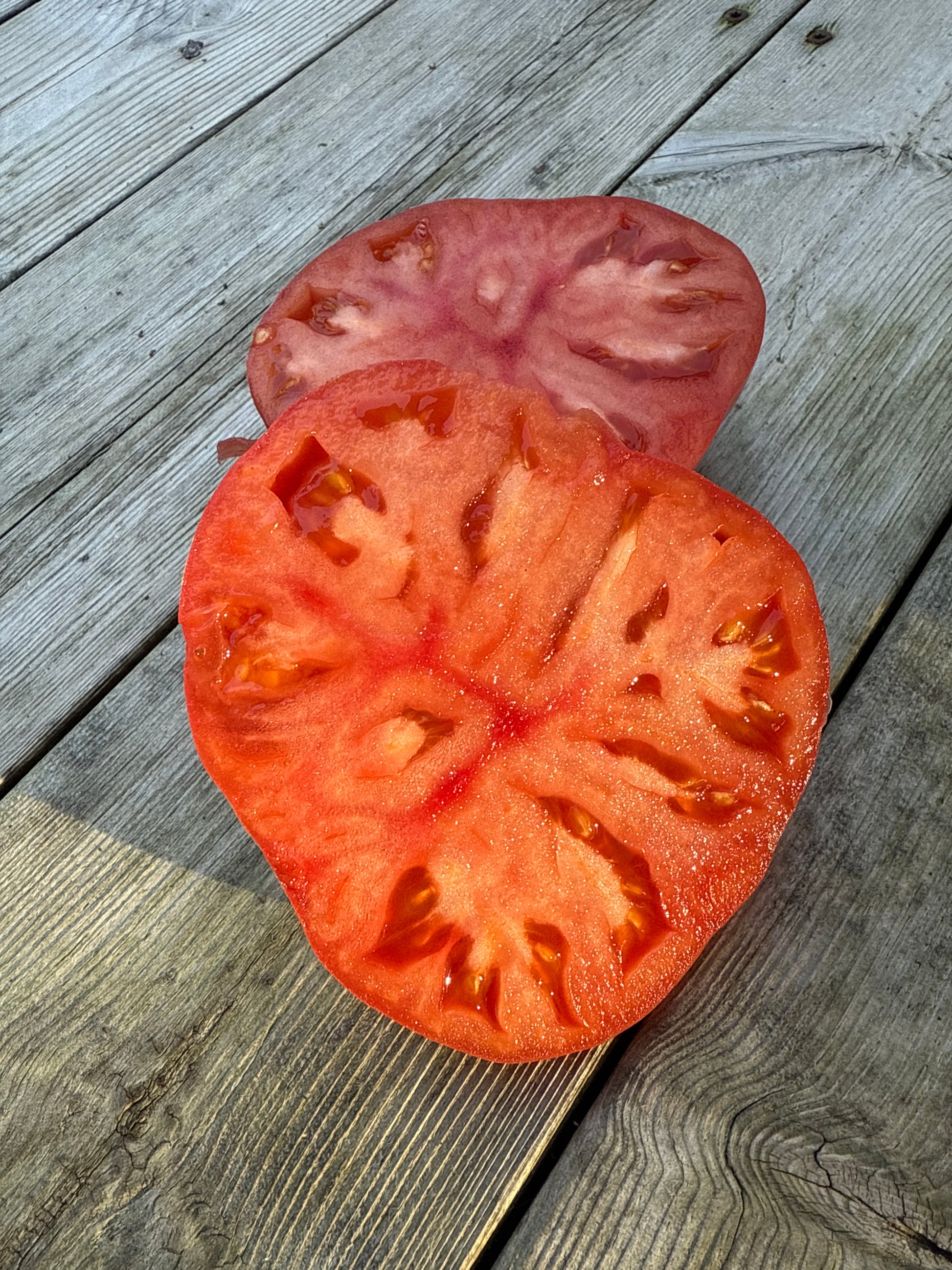 En variant med opprinnelse i USA, som følge av en tilfeldig krysning mellom «Pink Brandywine» og en ukjent italiensk variant.
