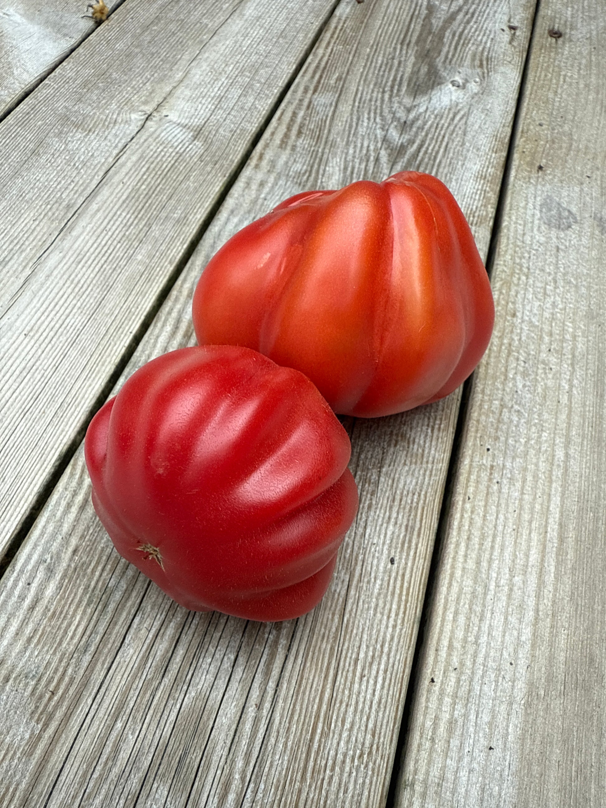 Frukt fra 200 til 300 gram, pæreformet, sterkt ribbet eller til og med plissert langs hele kroppen.