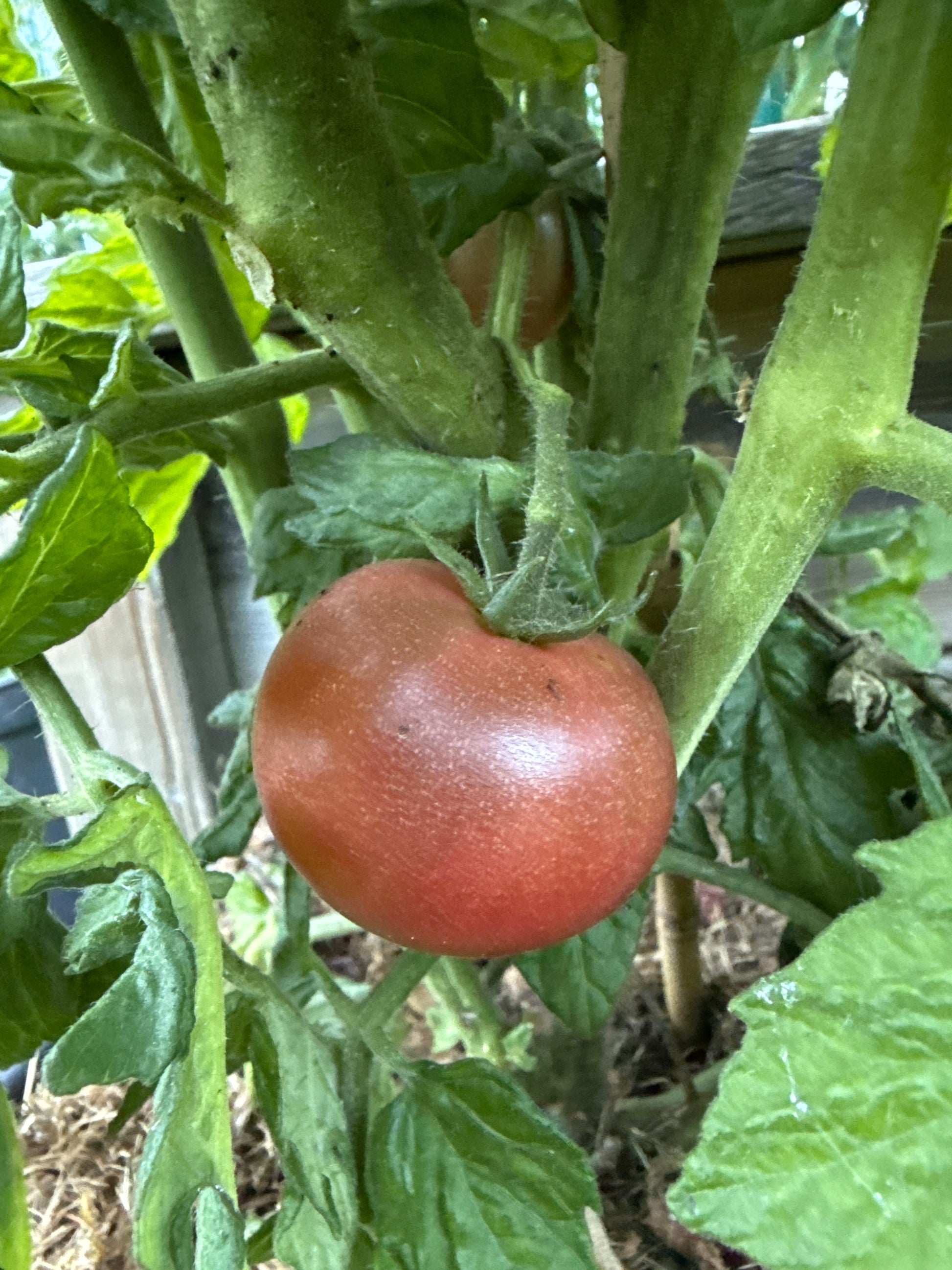 De fleste fruktene er store cherrytomater, men også større frukter finnes på samme plante. Vakre, lillarøde frukter med en mørkere hals. Utmerket, kompleks smak. Ruggy, mørkegrønt bladverk, vanlig blad. Introdusert i 2018.