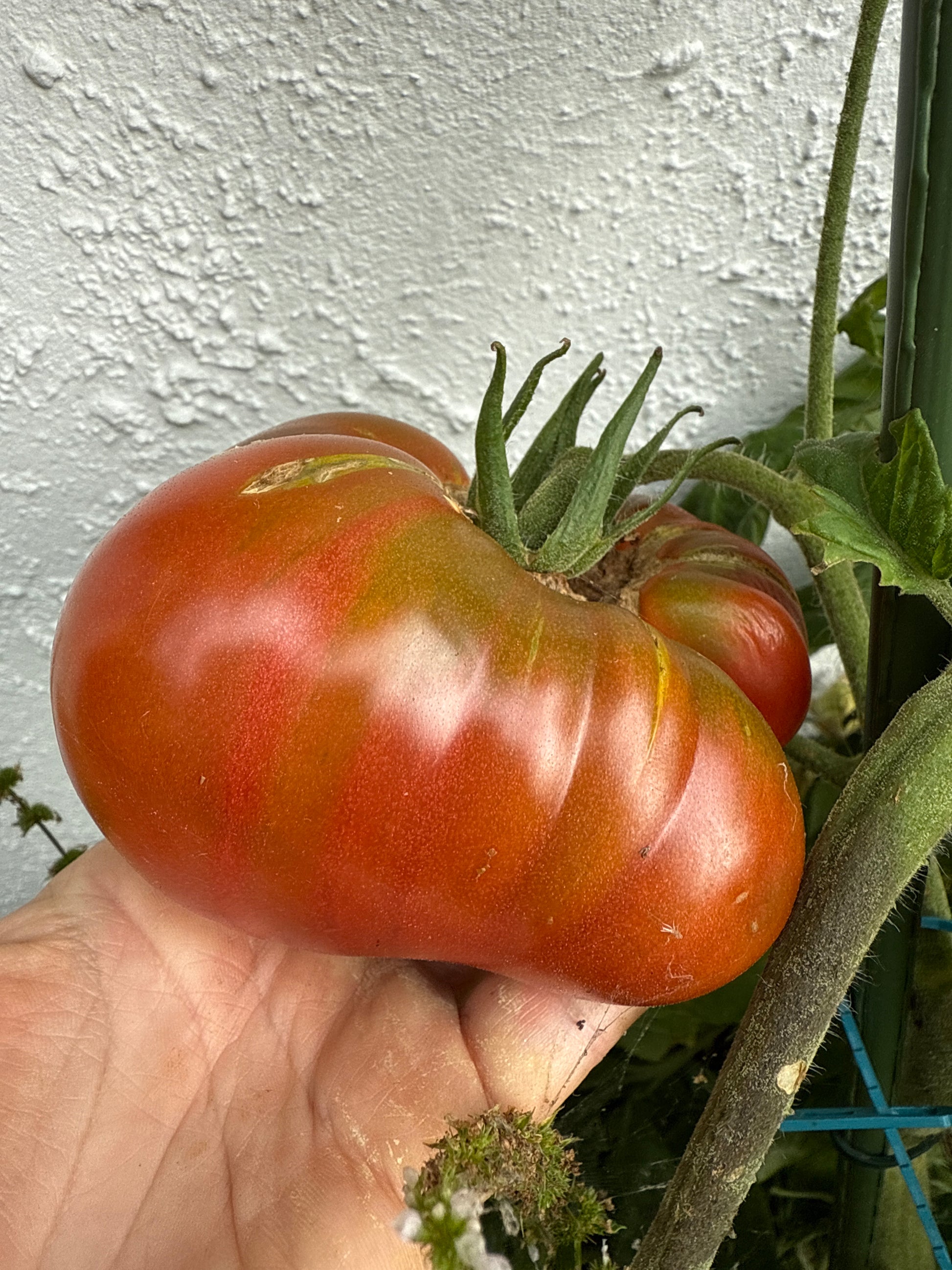 Frukt fra 180 til 350 gram av bifftypen, rund, litt flat ved polene og med avrundede skuldre for større størrelser.