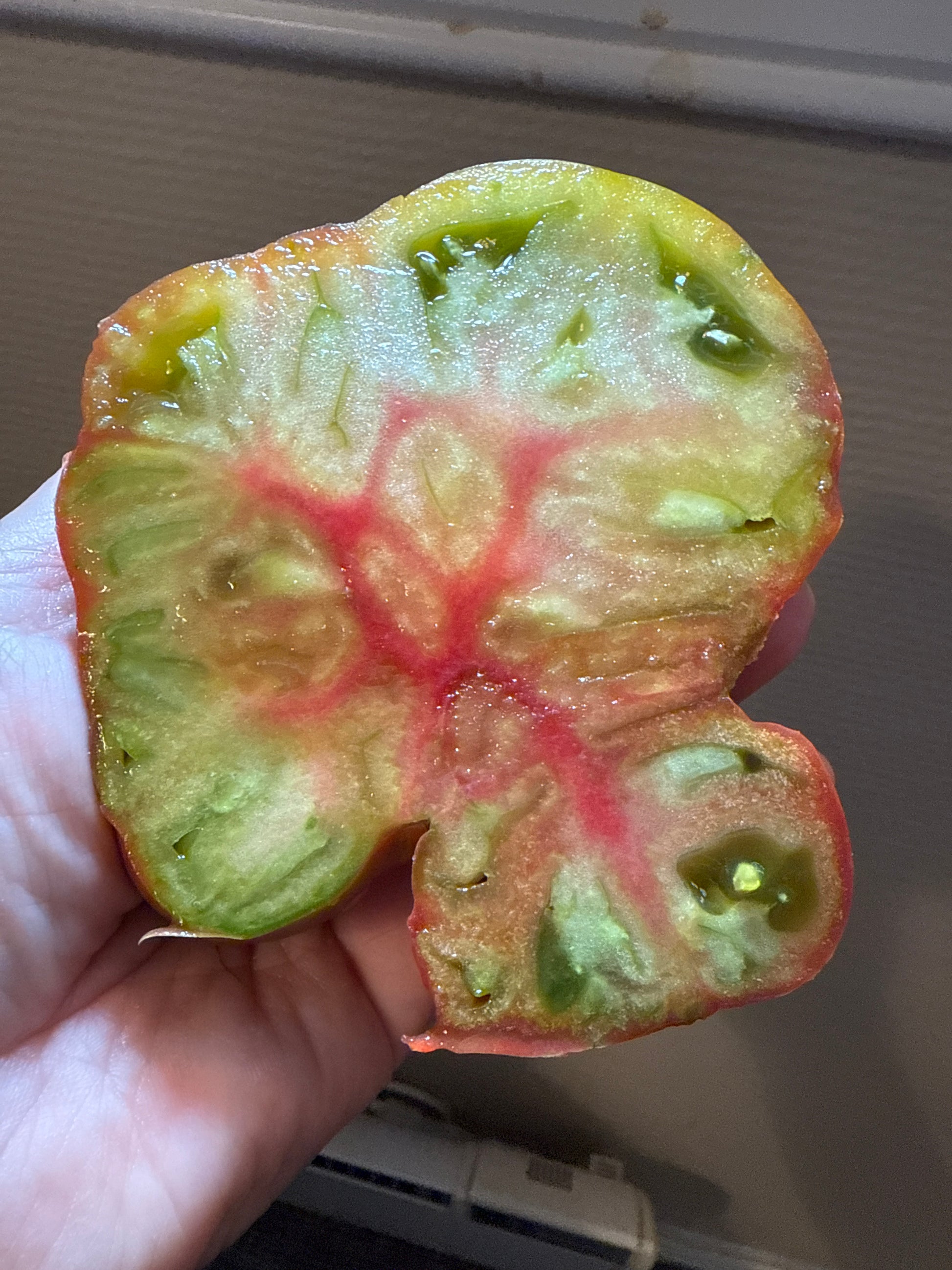 Grønt fruktkjøtt med marmorert rosa i midten, kjøttfullt og saftig. Utmerket smak å spise «al dente», mister smakskvalitetene sine hvis det er for modent.
