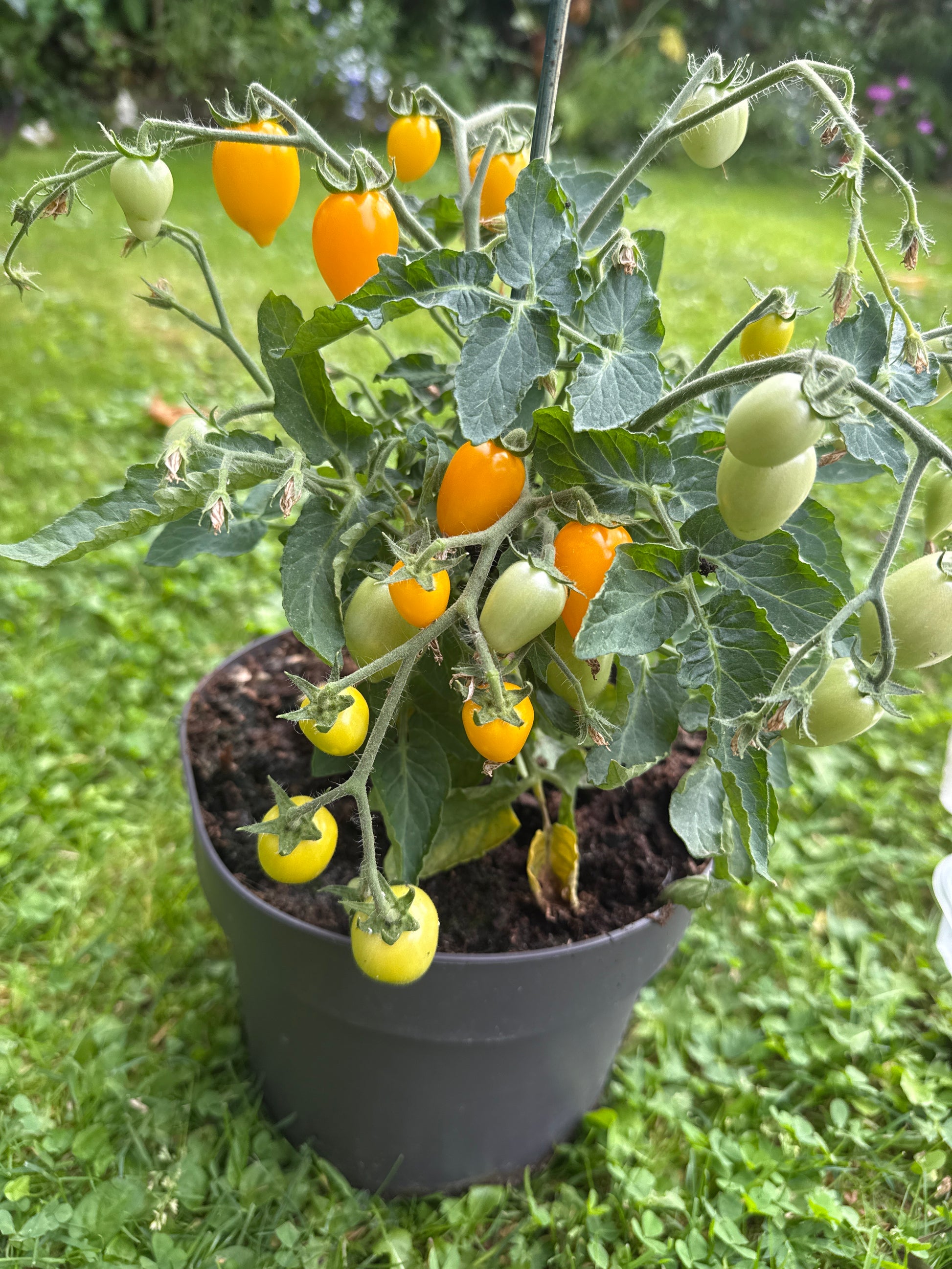 En flott microbusk med dråpeformede oransje frukter.