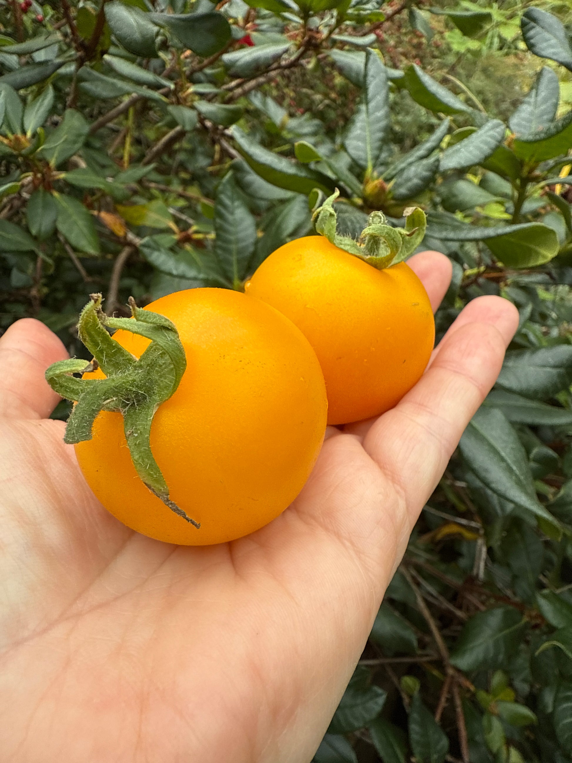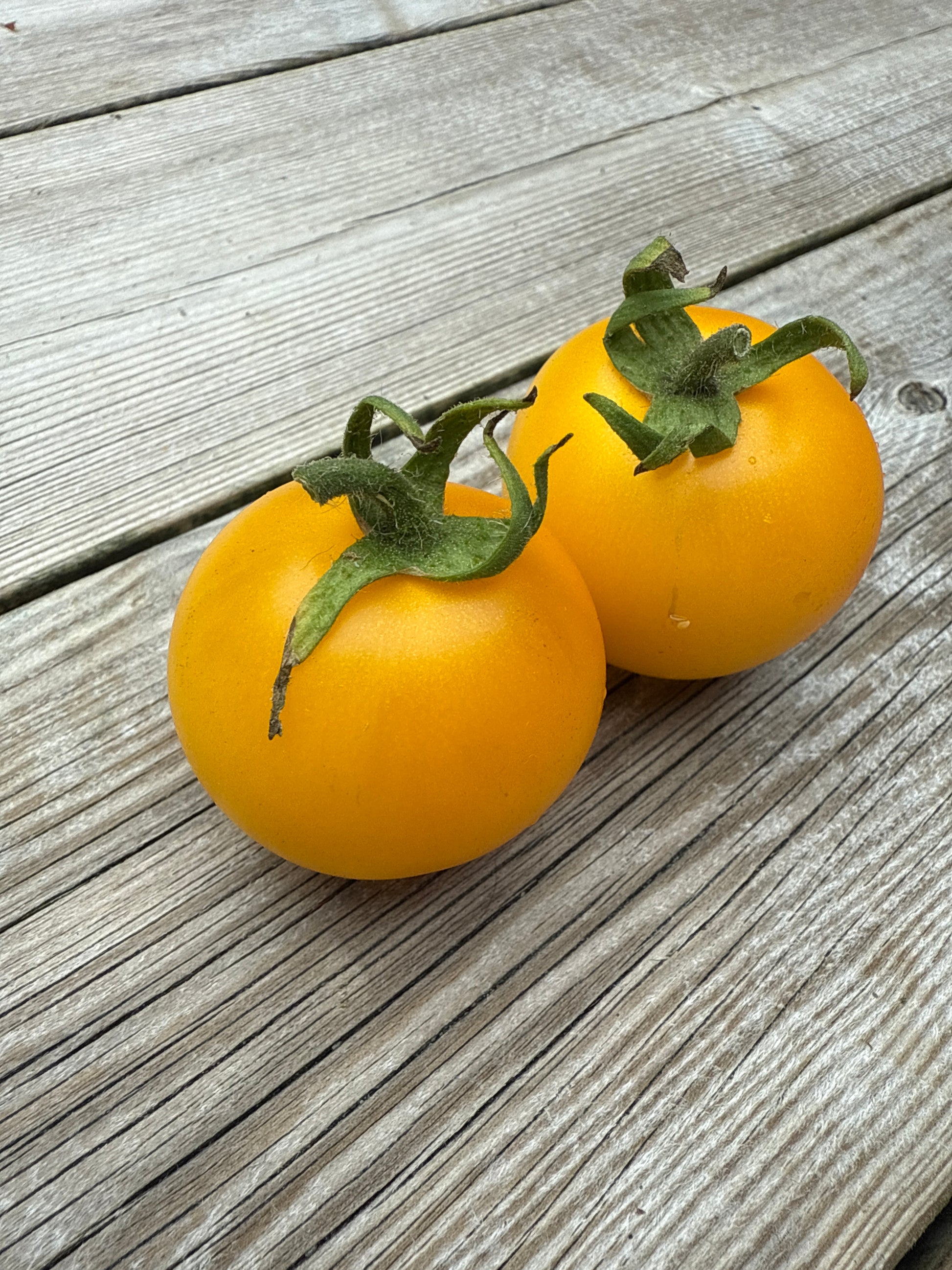 Golden Sunrise produserer runde, glatte tomater av normal størrelse, rundt 80 gram hver. Gyllengule frukter med en saftig, fruktig tomatsmak. Faste og sprekkresistente frukter.