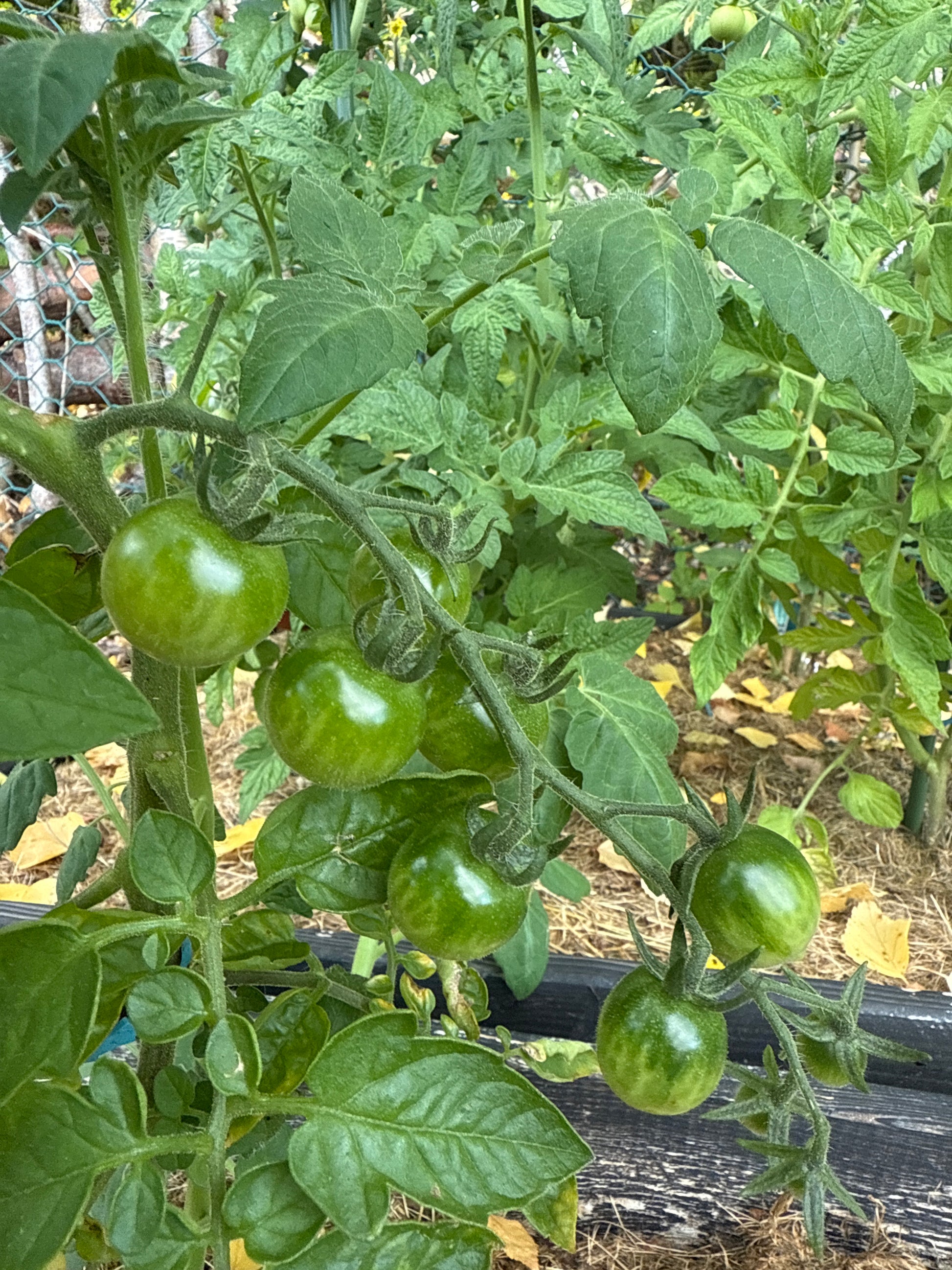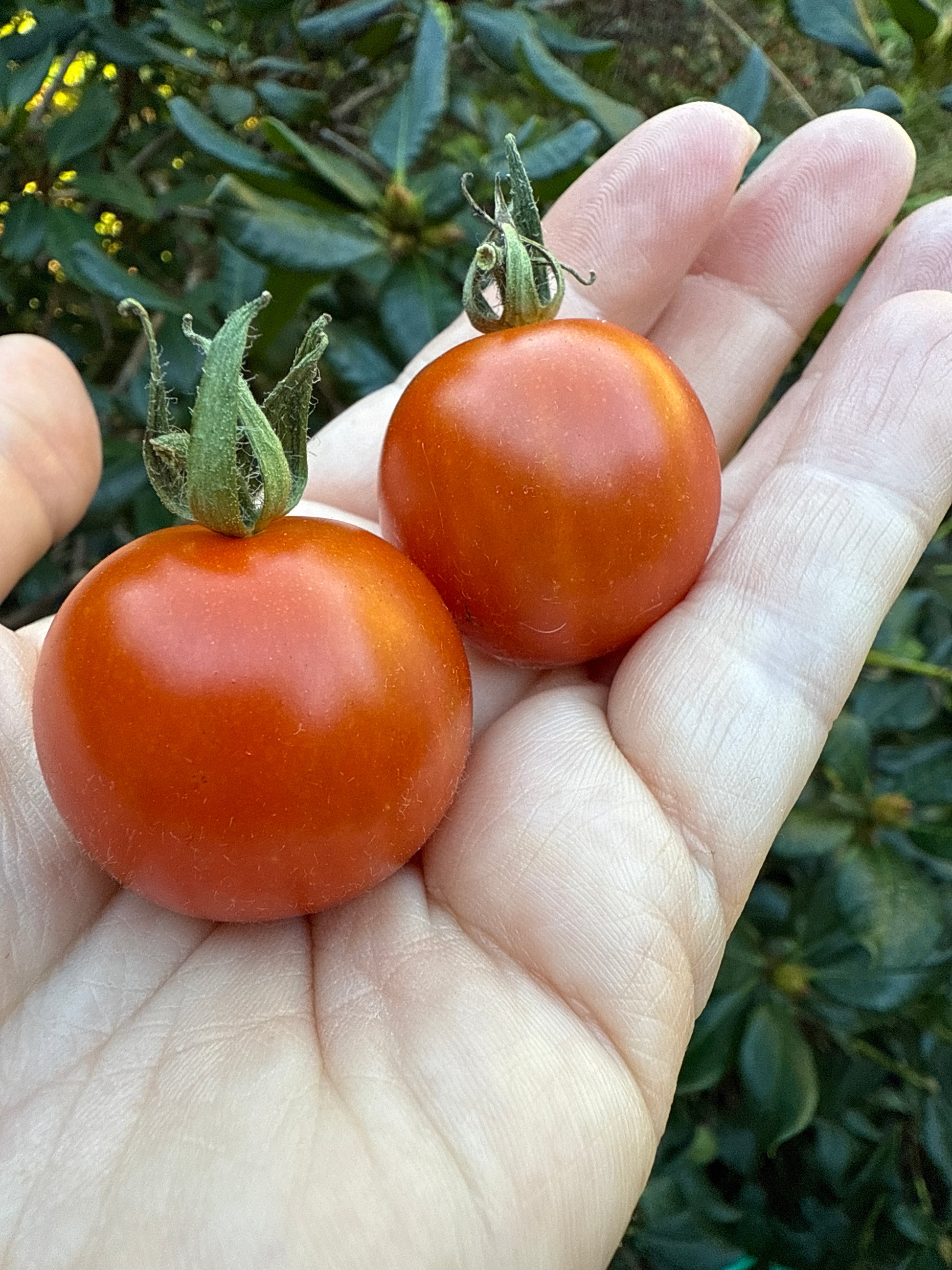 Ingrid produserer mellomstore, runde cherrytomater i klaser.
