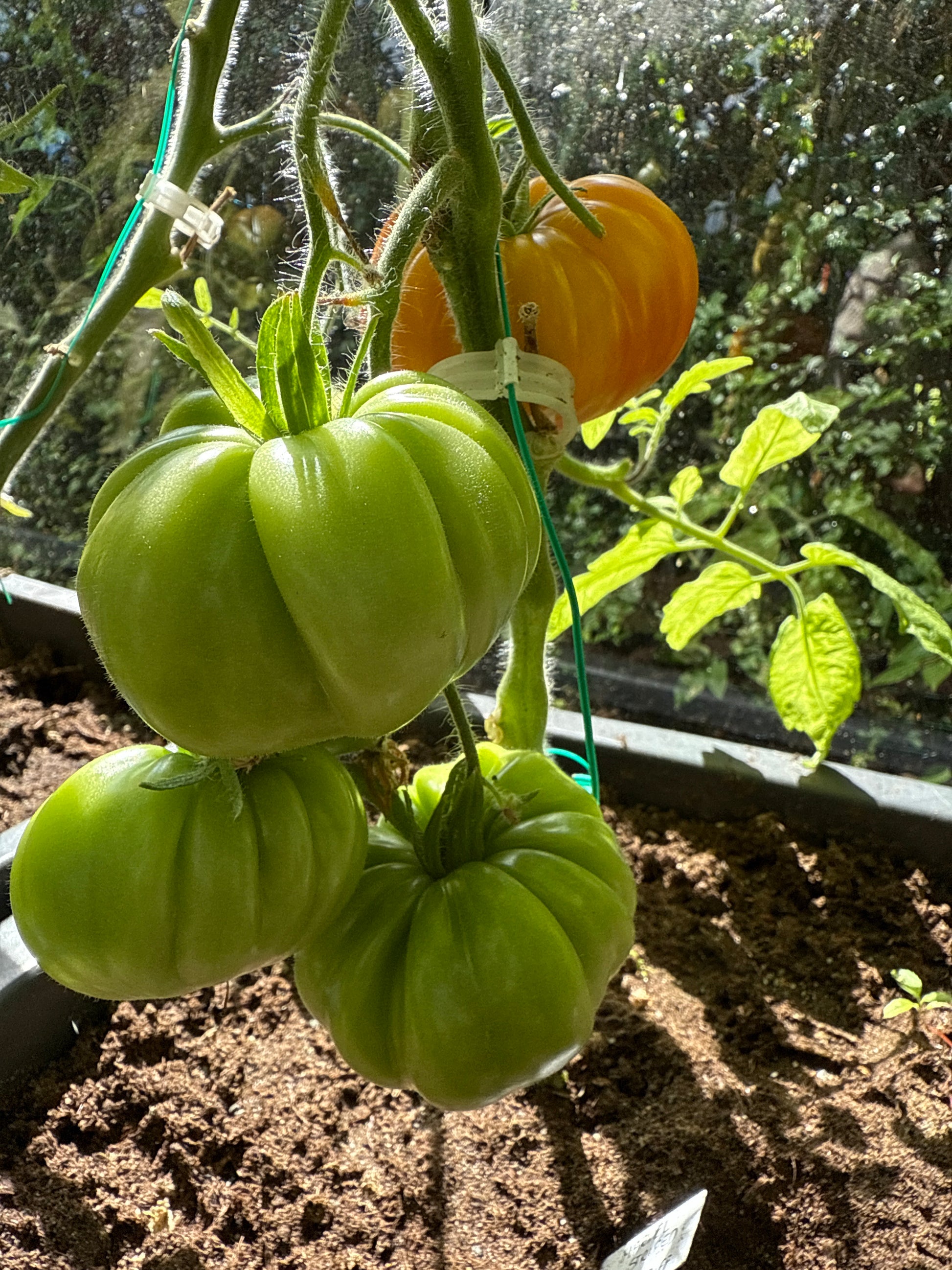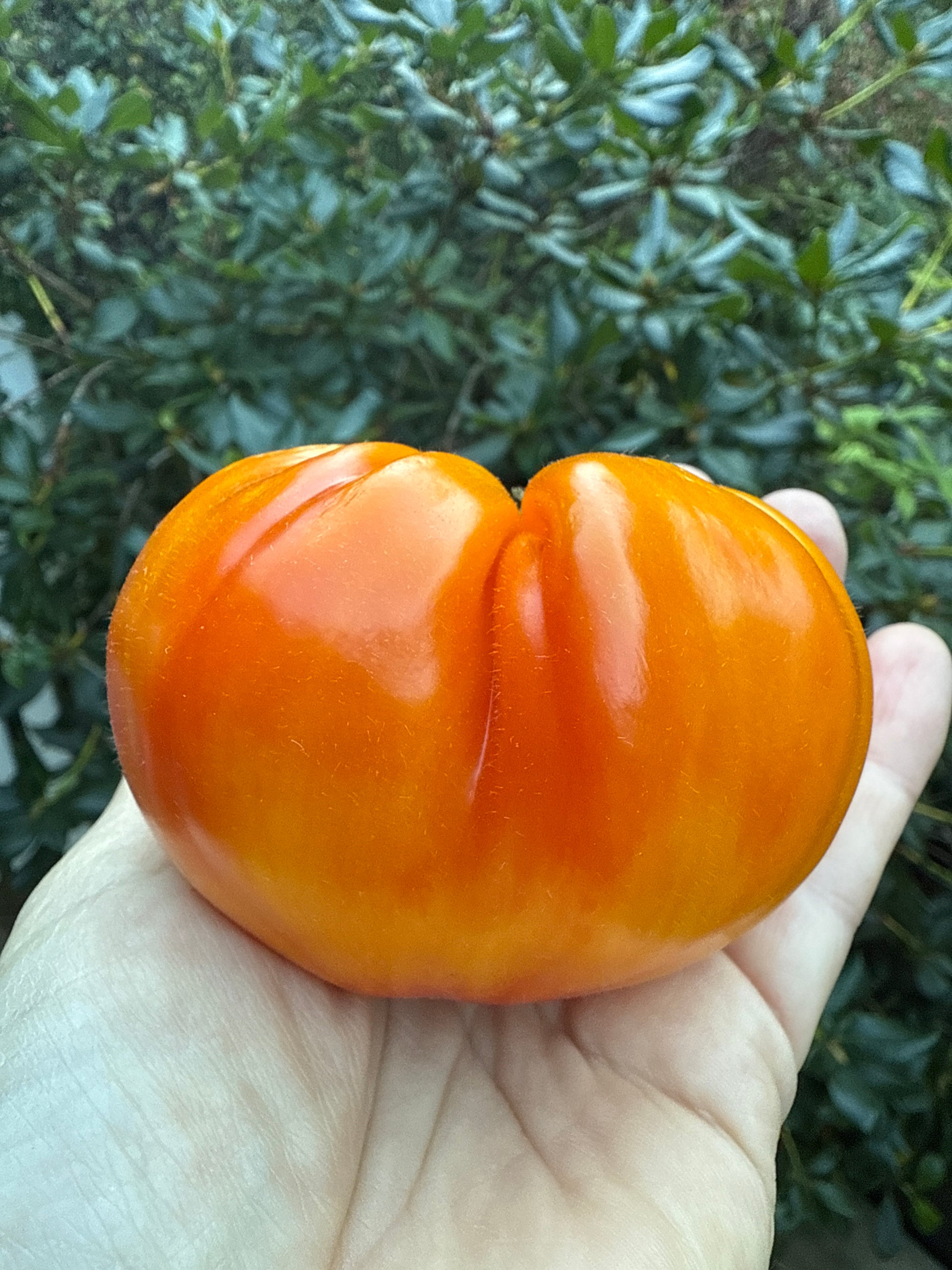 Flerfargede gyllenoransje frukter med gyllenrosa fruktkjøtt. Fruktig og søt tomatsmak.