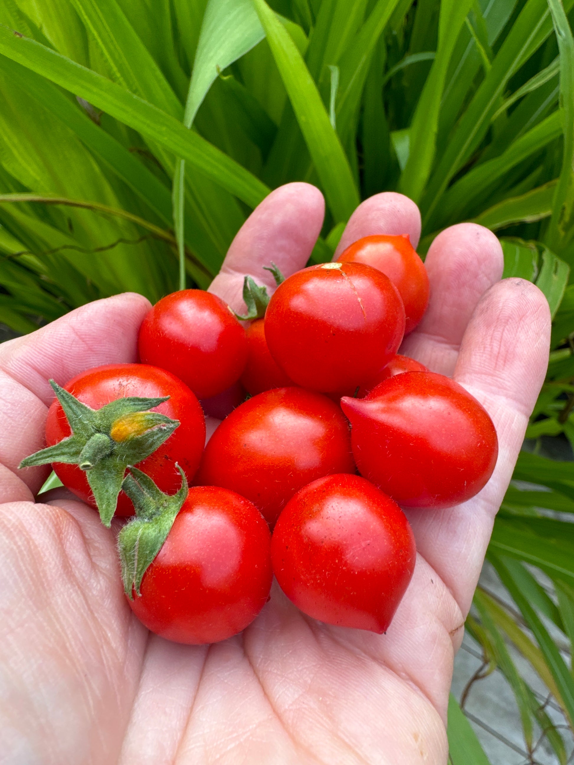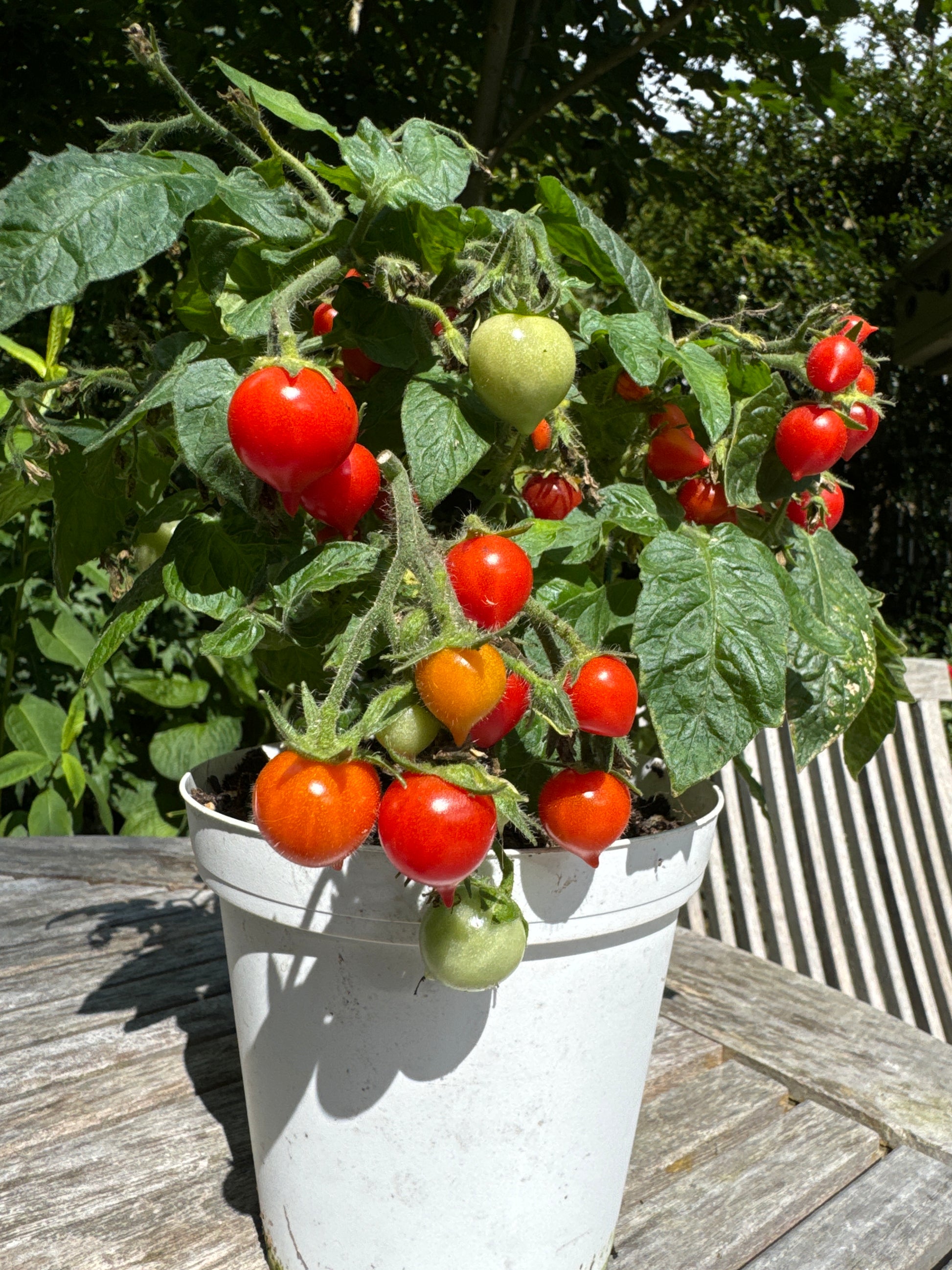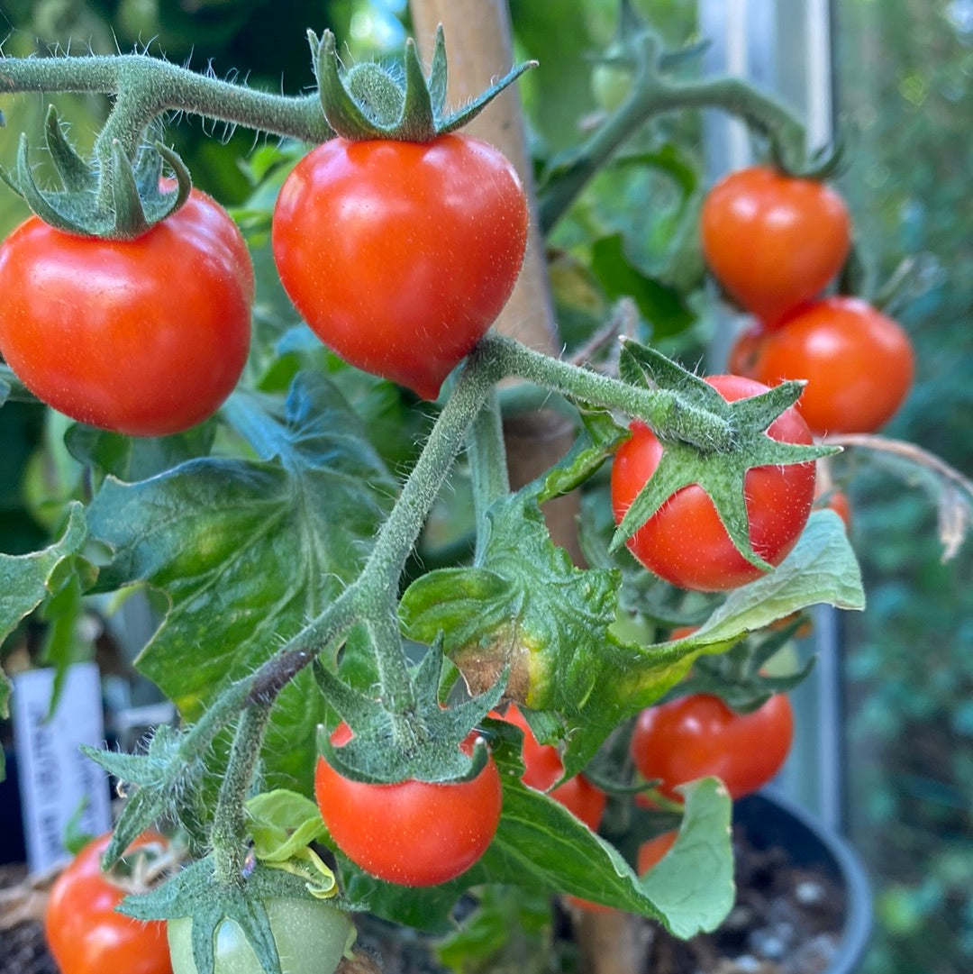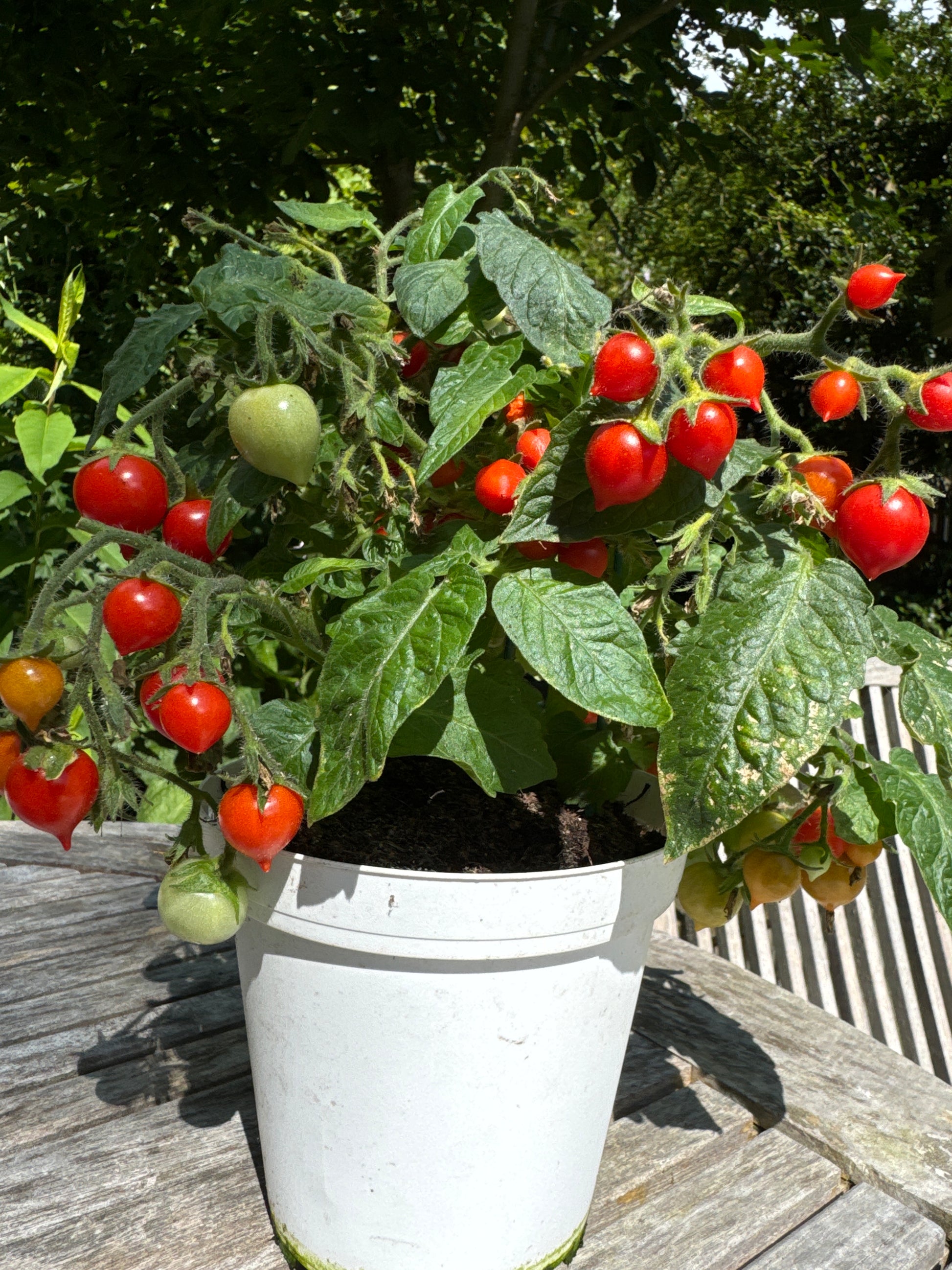 En flott microbusk med røde, små tomater. 20 cm høy.