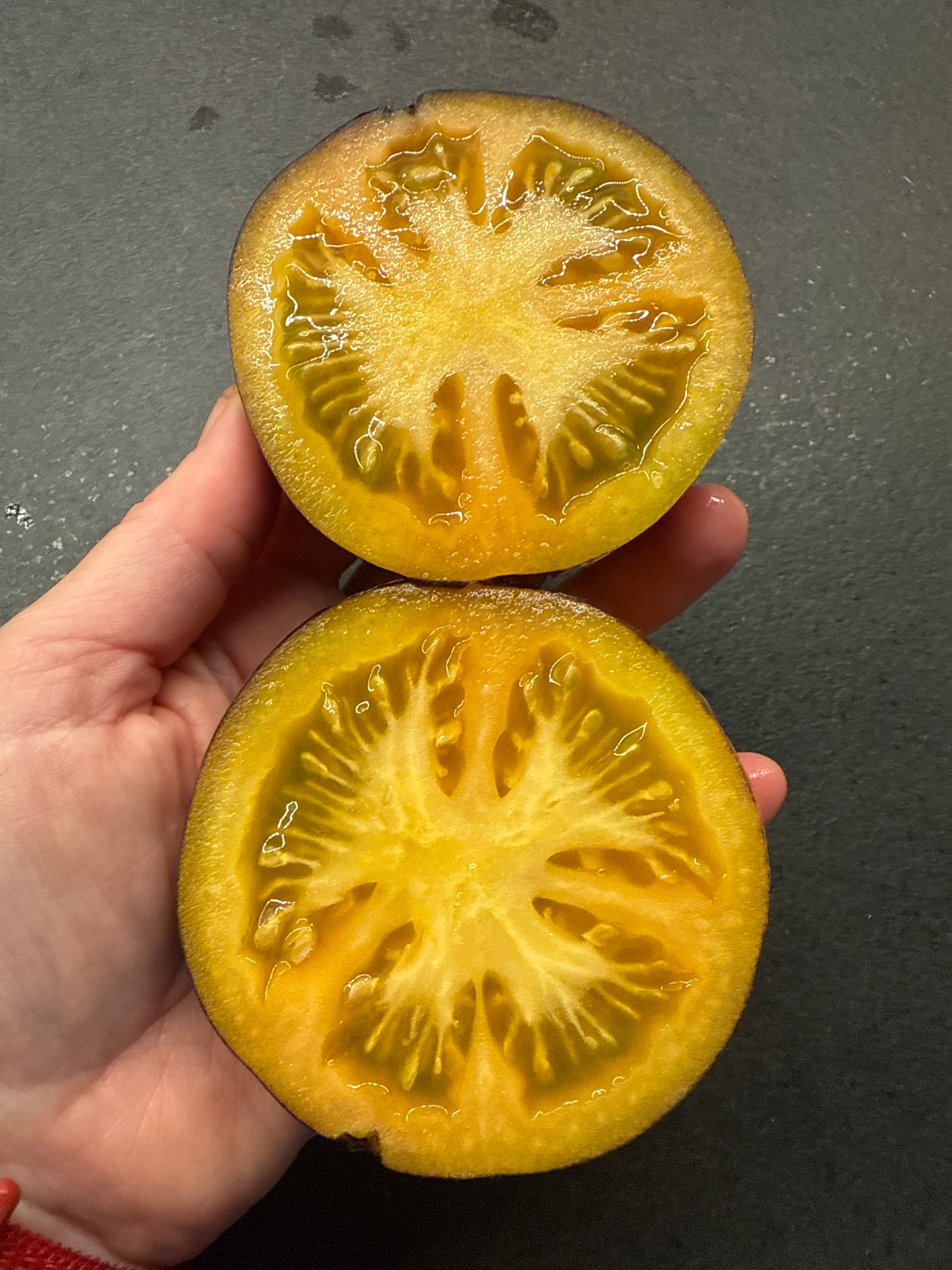Orange Blue tomat er en av de beste anthotomatene jeg har dyrket. Ikke bare er den usedvanlig vakker, men når den er godt modnet, er den supersøt og deilig.
