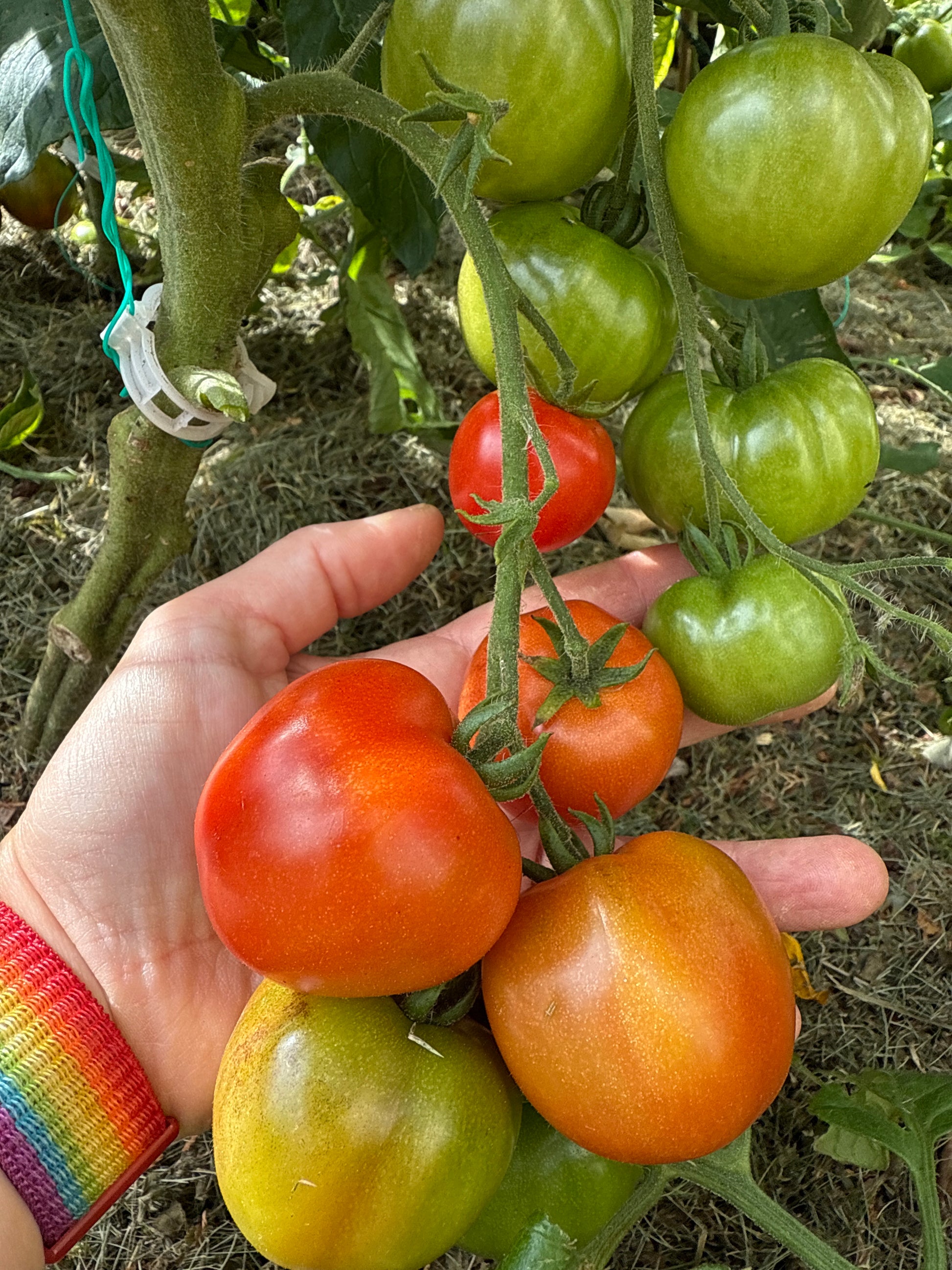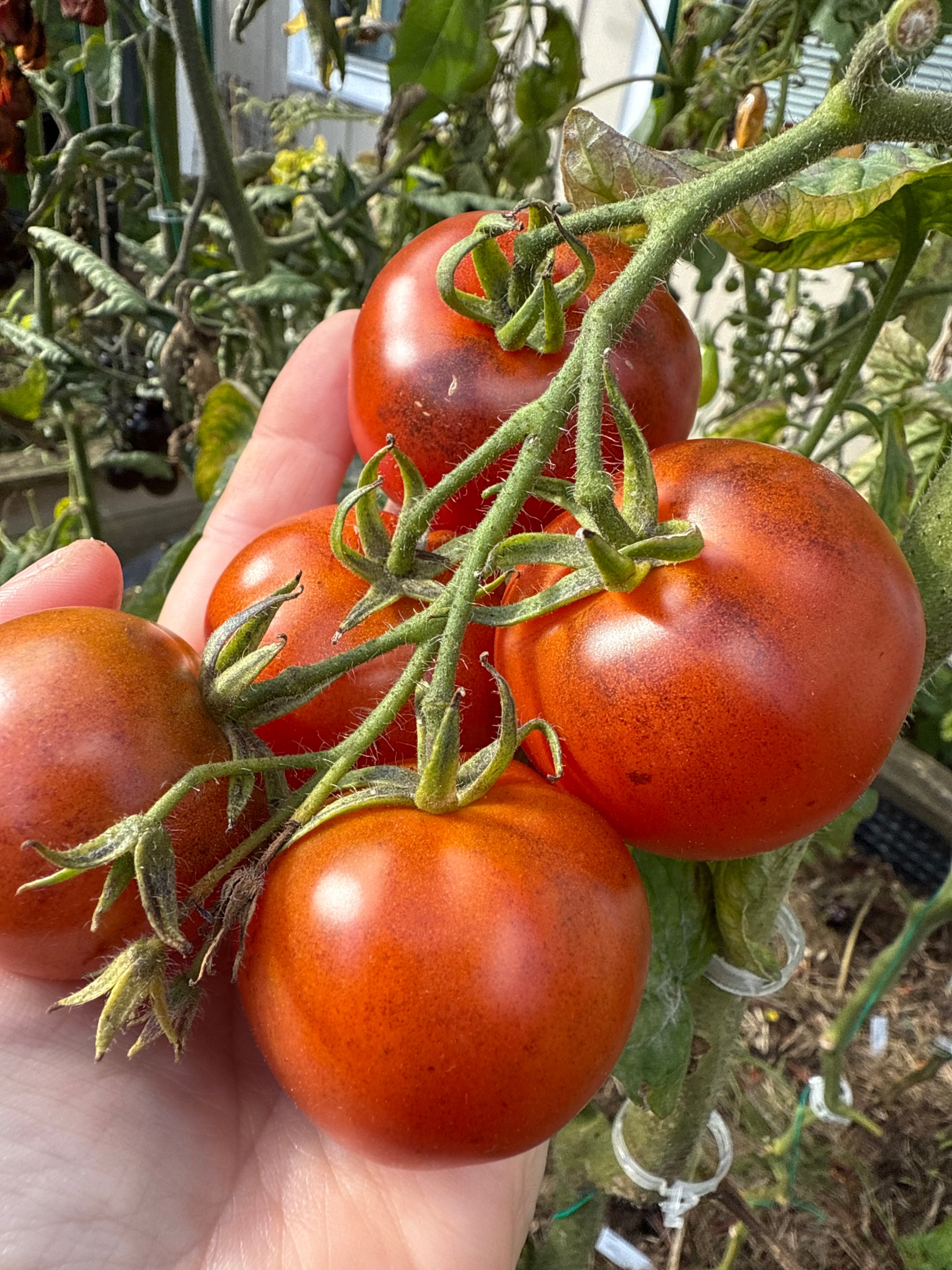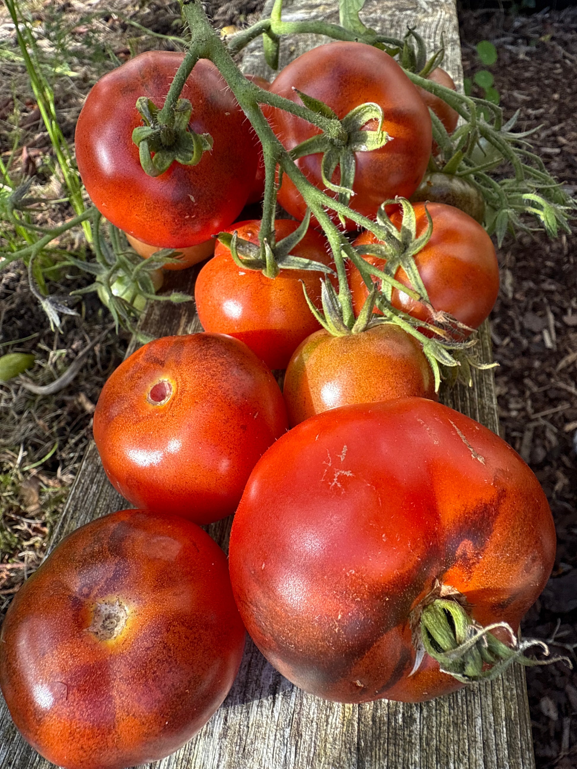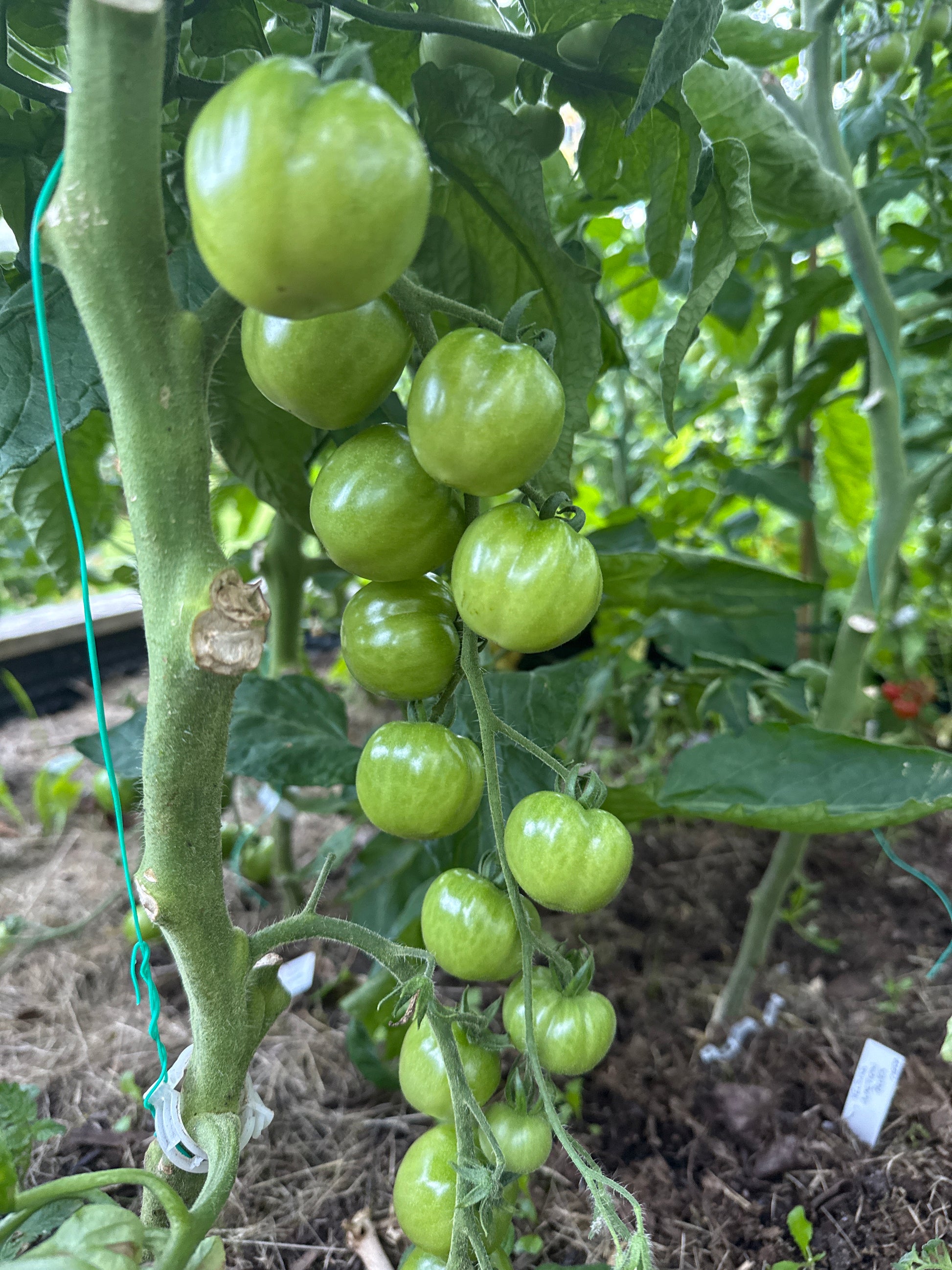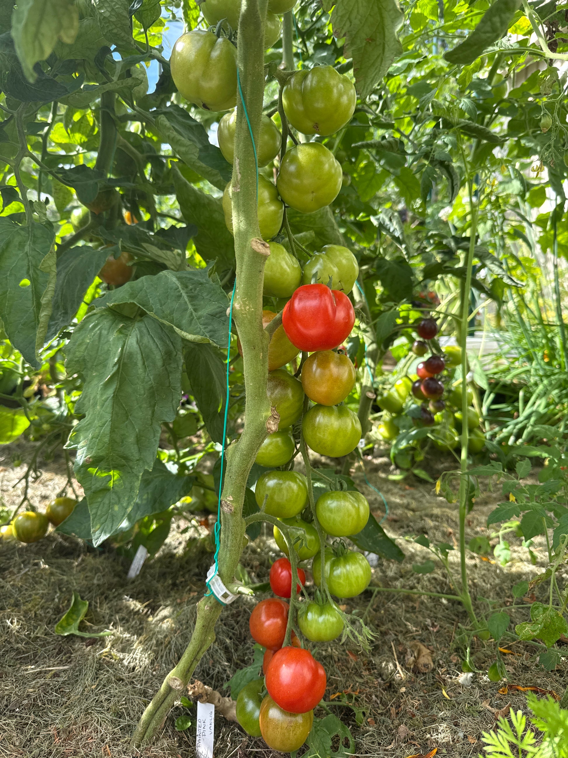 Painted Pink produserer runde store cherrytomater. Vakre mørkerosa frukter med antho-lilla hals. Frisk, fruktig og søt tomatsmak.