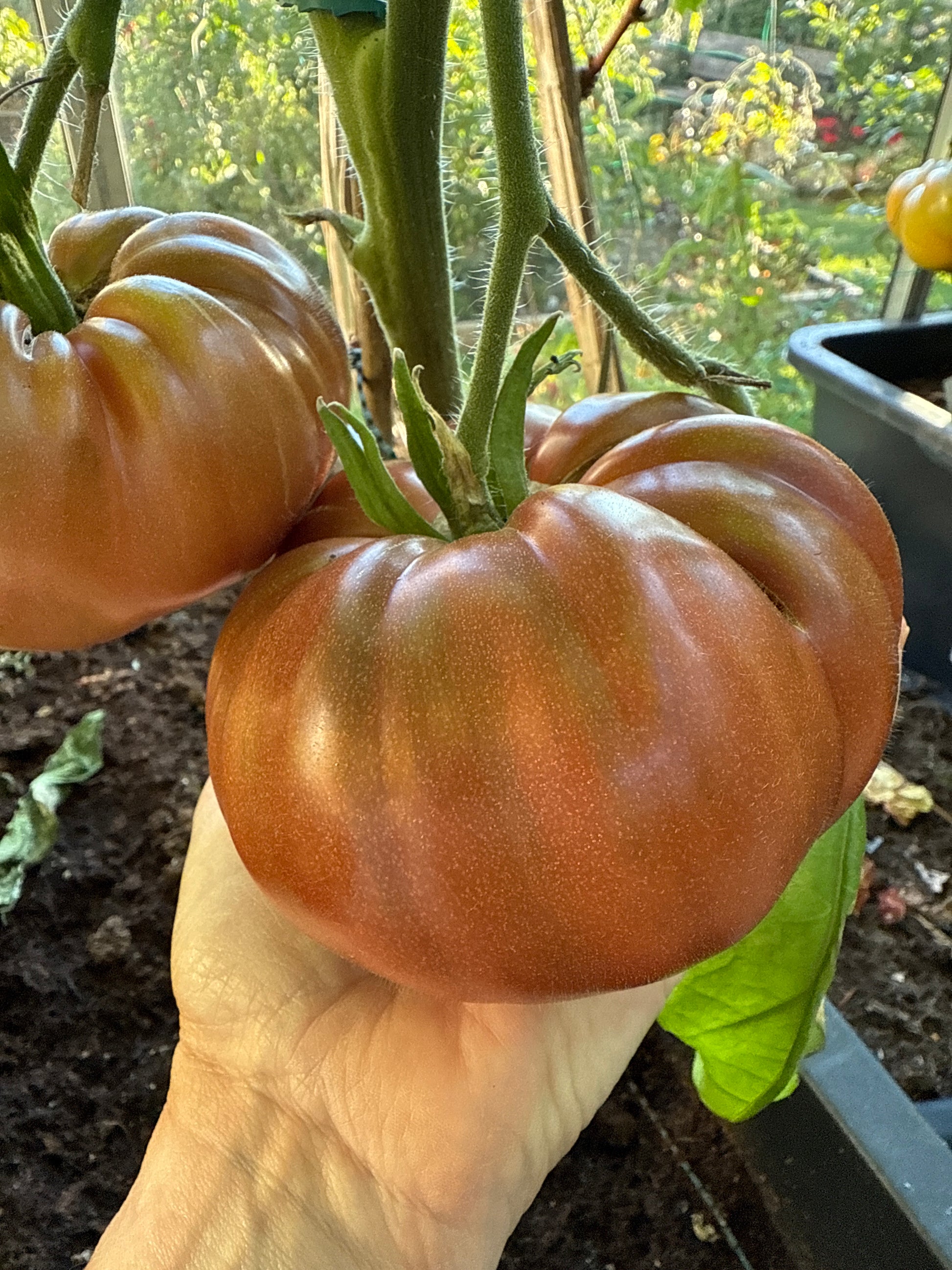 Polaris produserer vakre, runde til flate bifftomater på rundt 150–350 gram hver. Mørkelilla frukter med noe grønn farge på skuldrene. Rødlilla fruktkjøtt med en kompleks søt tomatsmak. Kjøttfulle frukter med få frø.