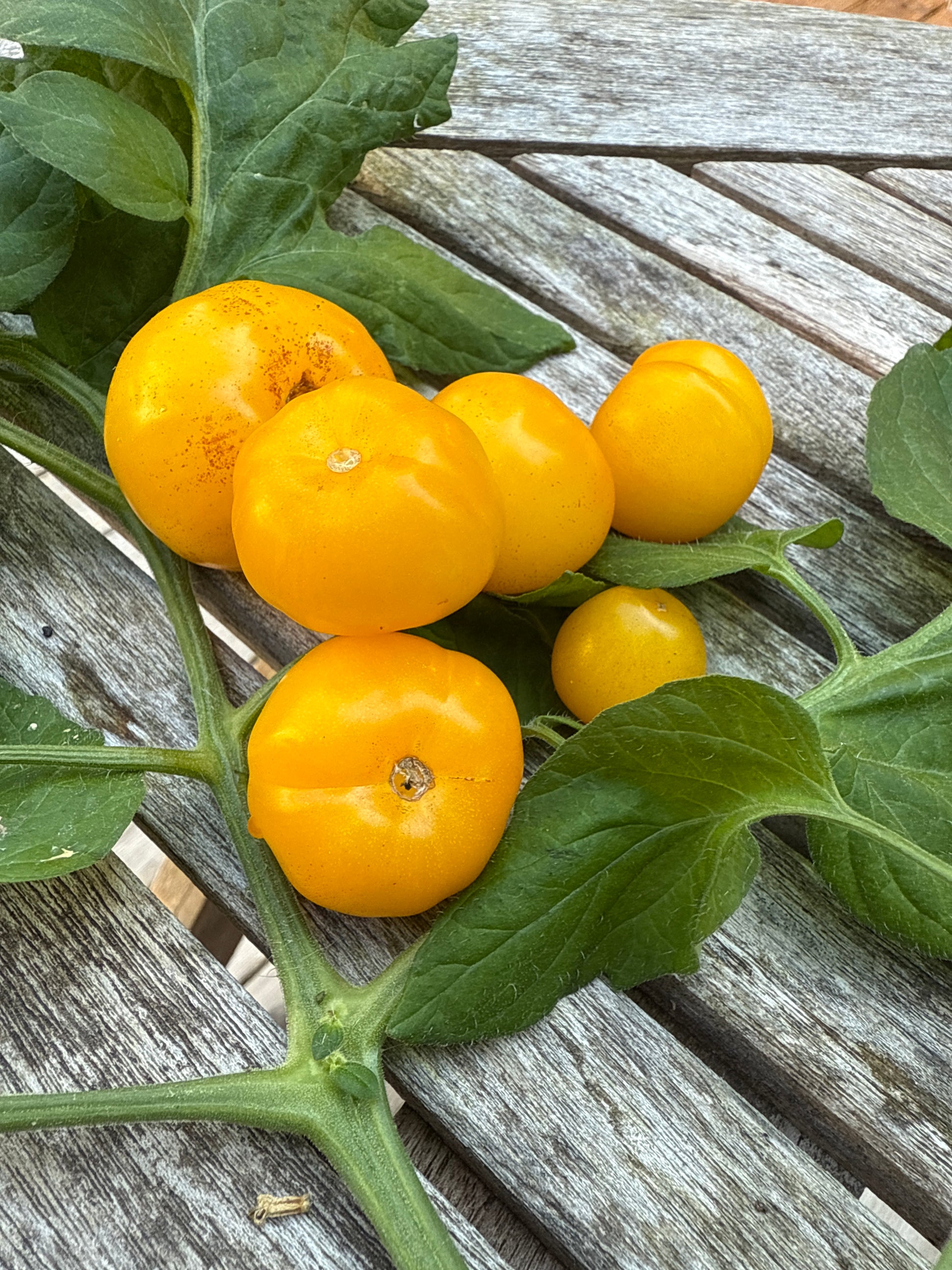 Produserer kuleformede, avlange frukter, gyllengule med noen lysere striper. Frisk, søt og velbalansert tomatsmak med en utmerket tekstur.