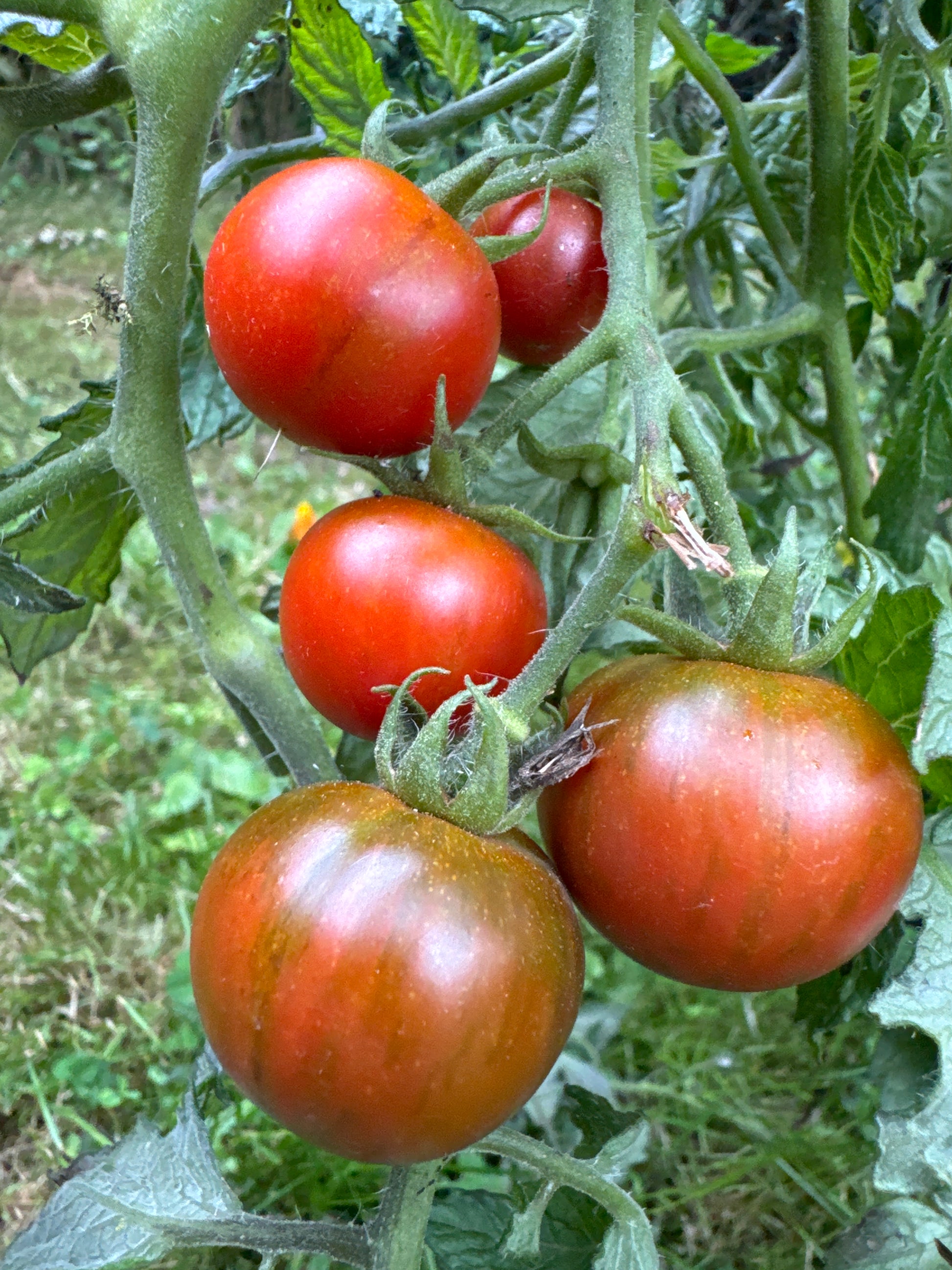 Rambling Red Stripe er en variant av tumbletomat med kaskaderende stilker.