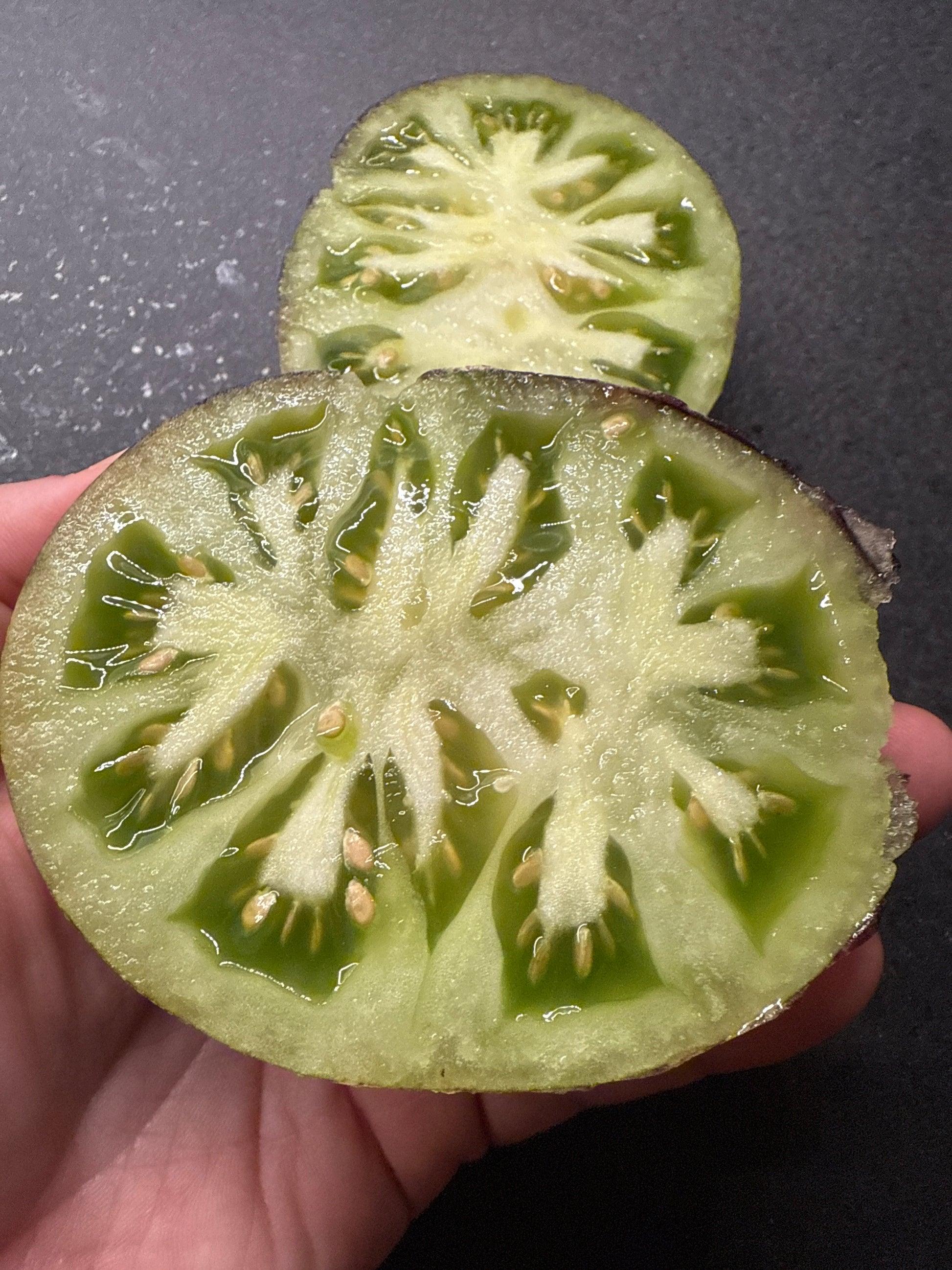 Rebel Starfighter VT16 produserer hjerteformede bifftomater på omtrent 150–300 gram hver. Fantastisk vakre frukter i metallisk grønn med lilla striper og hals. Limegrønt fruktkjøtt med utmerket syrlig tomatsmak.