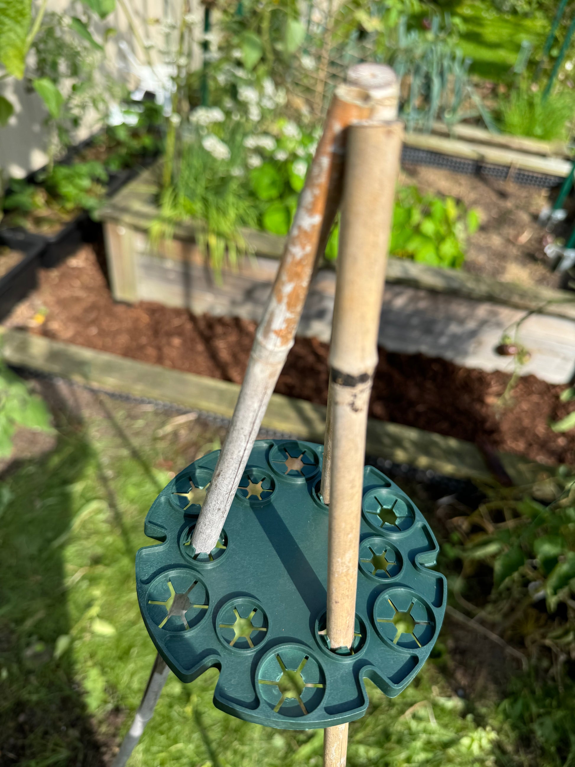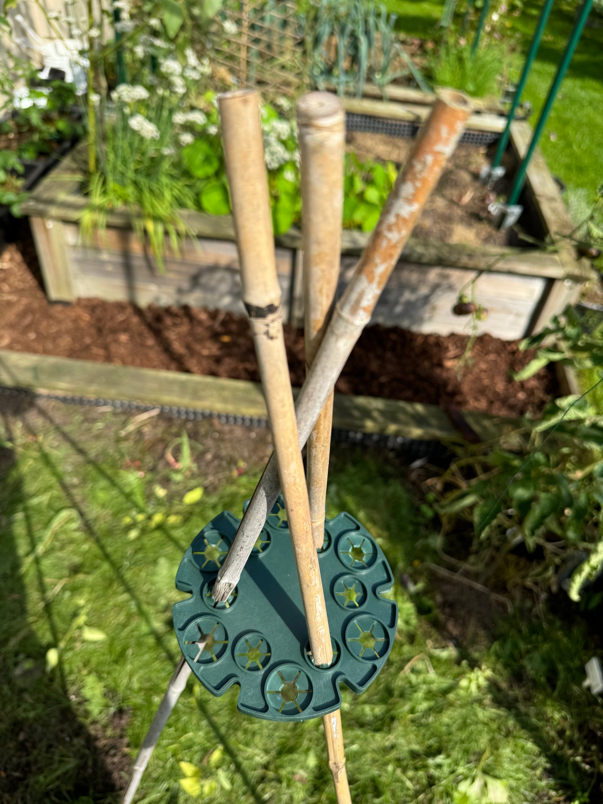 Denne er perfekt til å holde bambuspinner, eller andre støttepinner du har, samlet.