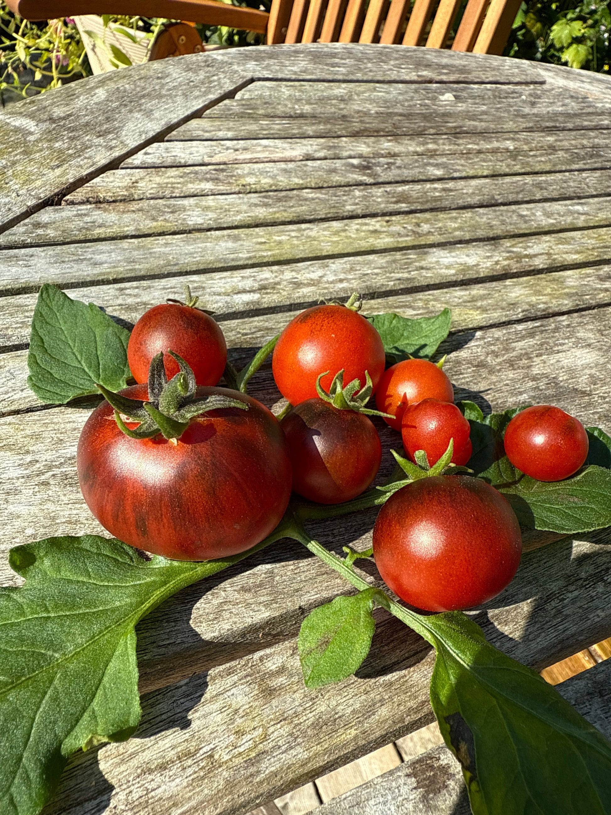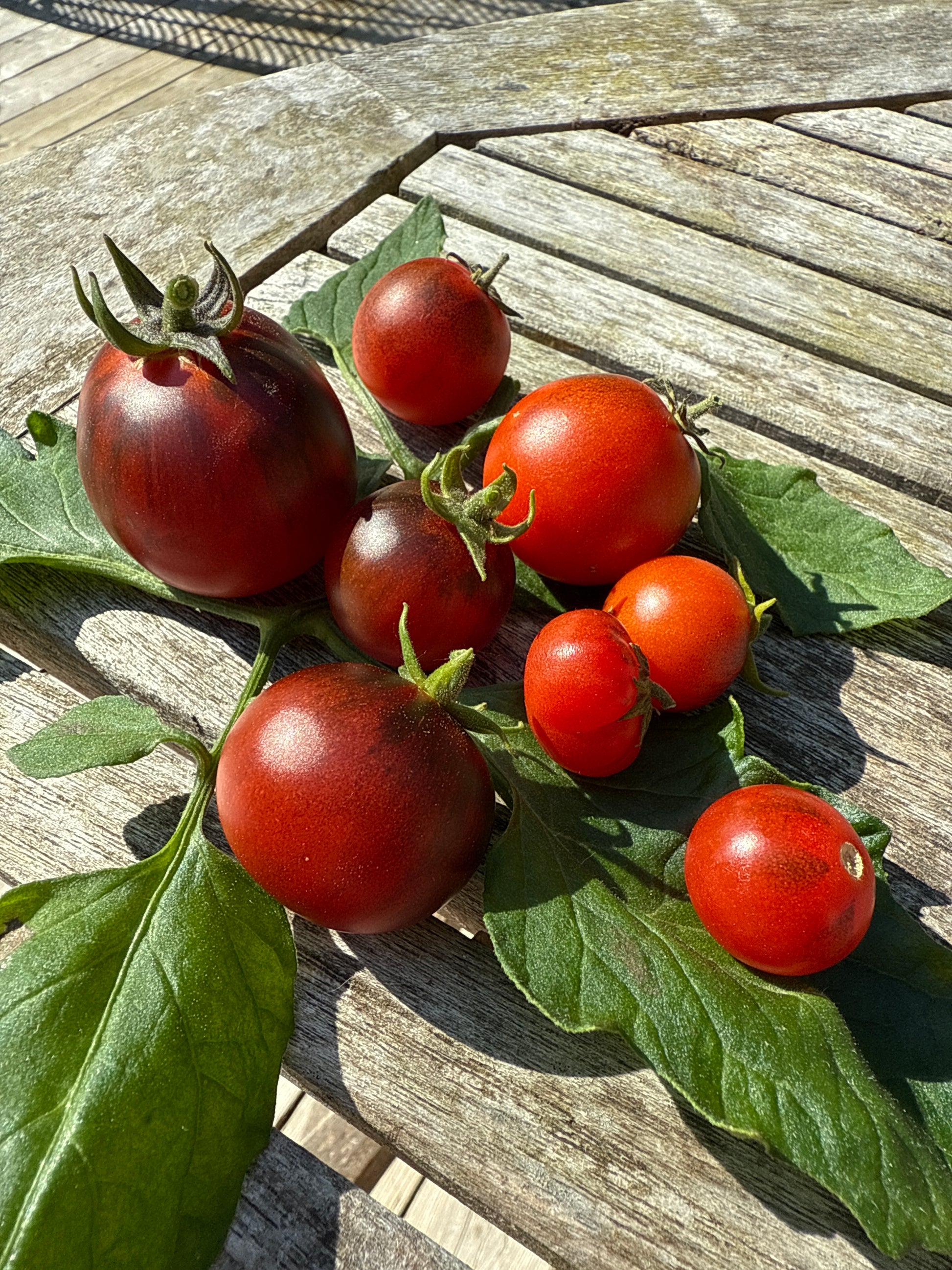 Ganske buskete planter. Produserer mørkerøde cherrytomater med en mørk, antho-lilla-brun hals der fruktene er utsatt for solen. Ikke så mye antho-lilla som Inkspot, Micro Purple, Tartufo og andre, men mer som en stripete blush. Saftig og søt tomatsmak. God motstand mot varme/fuktighet.